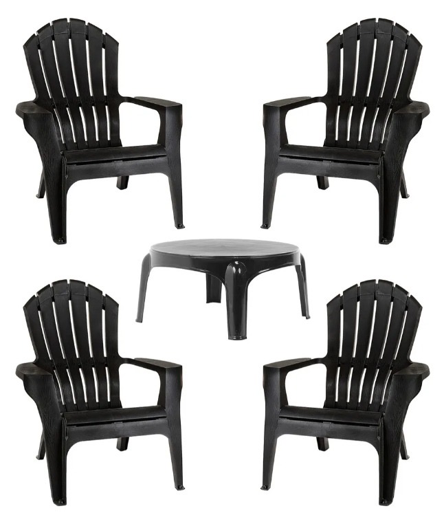 Set X4 Sillón Plastico De Jardín Miami + Mesa Puket Gardenlife Color Negro